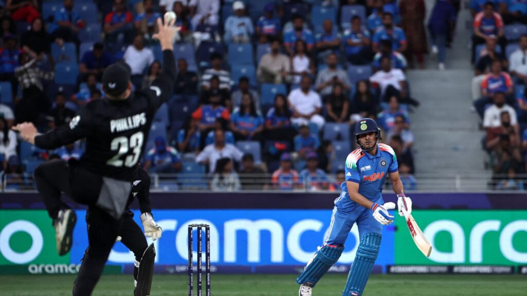 Rohit Sharma launched India’s reply with ferocity, smashing 21 runs off Nathan Smith’s first two overs. His 76 off 68 balls, studded with six boundaries and three sixes, anchored a 100-run opening stand with Shubman Gill (31). Gill’s dismissal, courtesy of a sensational one-handed catch by Phillips off Mitchell Santner, sparked a mini-collapse as Virat Kohli (1) fell lbw to Michael Bracewell.