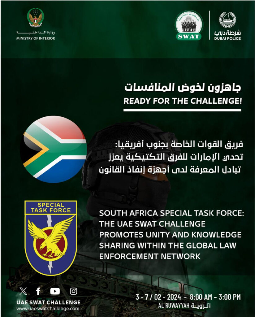 Dubai, UAE – The Special Task Force team of South Africa has officially confirmed their participation in the upcoming UAE SWAT Challenge 2024. Emphasizing the significance of the challenge, the team highlighted